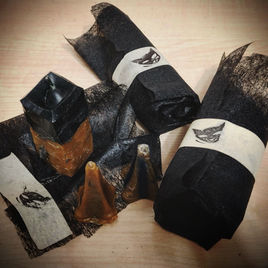 A select range of Nura Attiqa's occult paintings and artisan candles.
