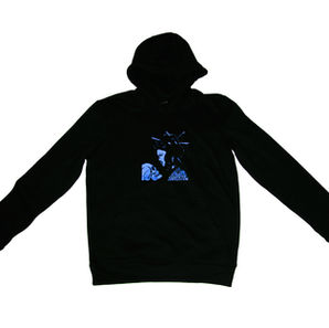 Geisha with Skull Blue on Black Hoodie